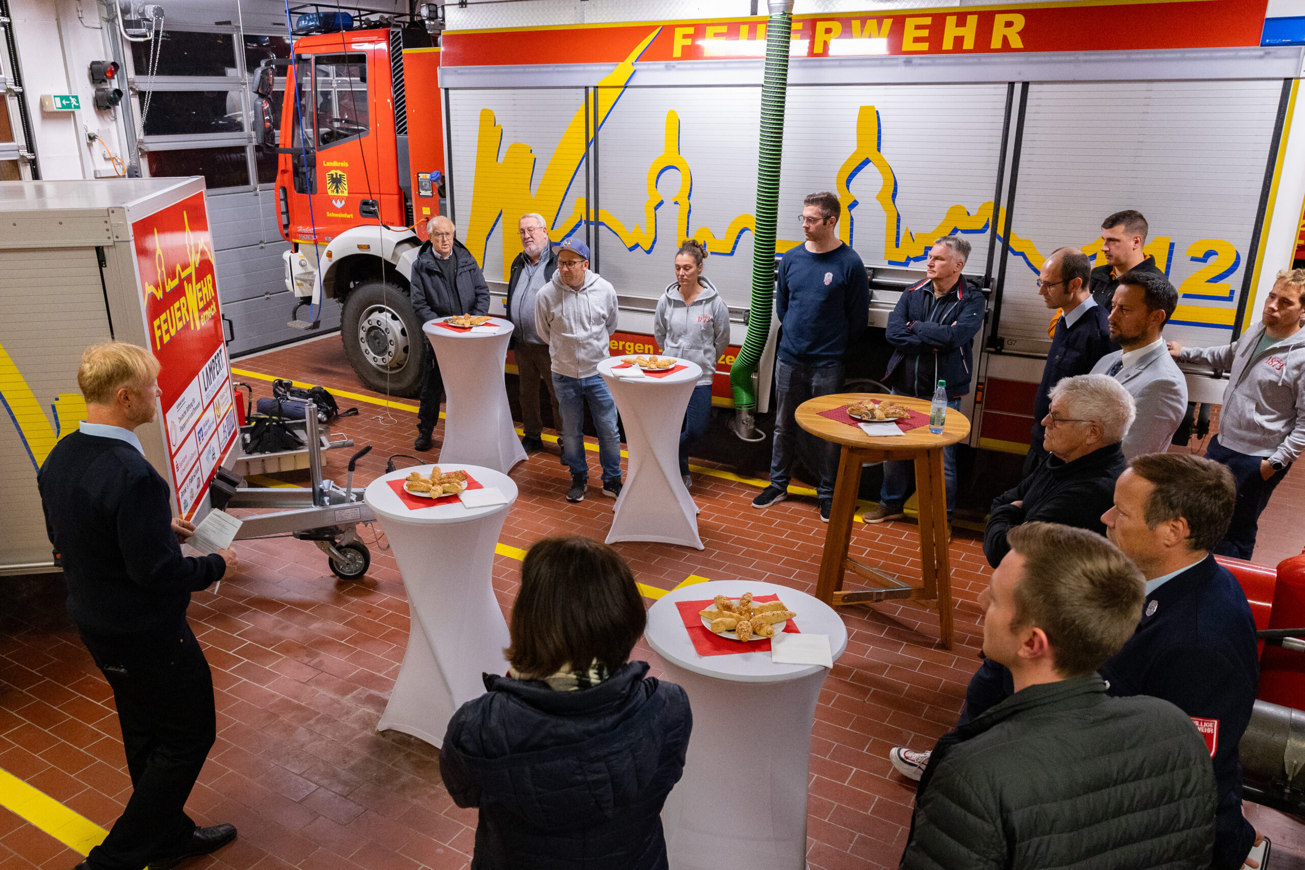 Die Beschaffung des Anhängers und seine vielfältige Beladung sei im Wesentlichen erst durch die Vielzahl an Spendern und Förderungen möglich geworden, so Hein weiter. Diese Unterstützung ist nicht selbstverständlich, in der Förderung des Nachwuchses jedoch renditestark angelegt. Neben den finanziellen Zuschüssen floss außerdem viel Eigenleistung in den Umbau sowie den Innenausbau des Anhängers. Speziell die Firma AS Objektbau des stellvertretenden Kommandanten Andreas Schneider engagierte sich hier in außergewöhnlichem Maß und investierte viel Know-How, Zeit und Herzblut in das Projekt. Mit einem großen Dankeschön an alle, die zum Gelingen beigetragen haben, schloss der Vorsitzende seine Rede und lud die Anwesenden ein, das neue Fahrzeug und seine Beladung näher kennenzulernen.