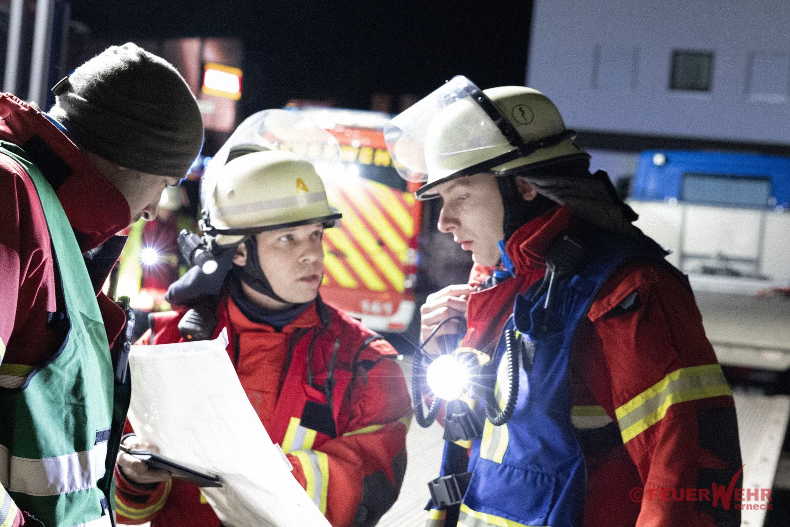 In der anschließenden Besprechung aller Führungskräfte wurde ein durchweg positives Fazit gezogen. Wie üblich zeigten sich kleinere Punkte mit Verbesserungspotenzial, insgesamt jedoch verlief die Übung strukturiert, effizient und zielorientiert. Bei der abschließenden Ansprache im Feuerwehrgerätehaus lobte Kreisbrandinspektor Andreas Schraut die gute Zusammenarbeit aller beteiligten Wehren und hob hervor, dass die Feuerwehr Werneck trotz hoher Einsatzbelastung regelmäßig derart anspruchsvolle Großübungen durchführt. Auch Bürgermeister Sebastian Hauck würdigte das Engagement der Einsatzkräfte, die bei winterlichen Temperaturen um den Gefrierpunkt mehrere Stunden lang trainierten, um im Ernstfall optimal helfen zu können.
