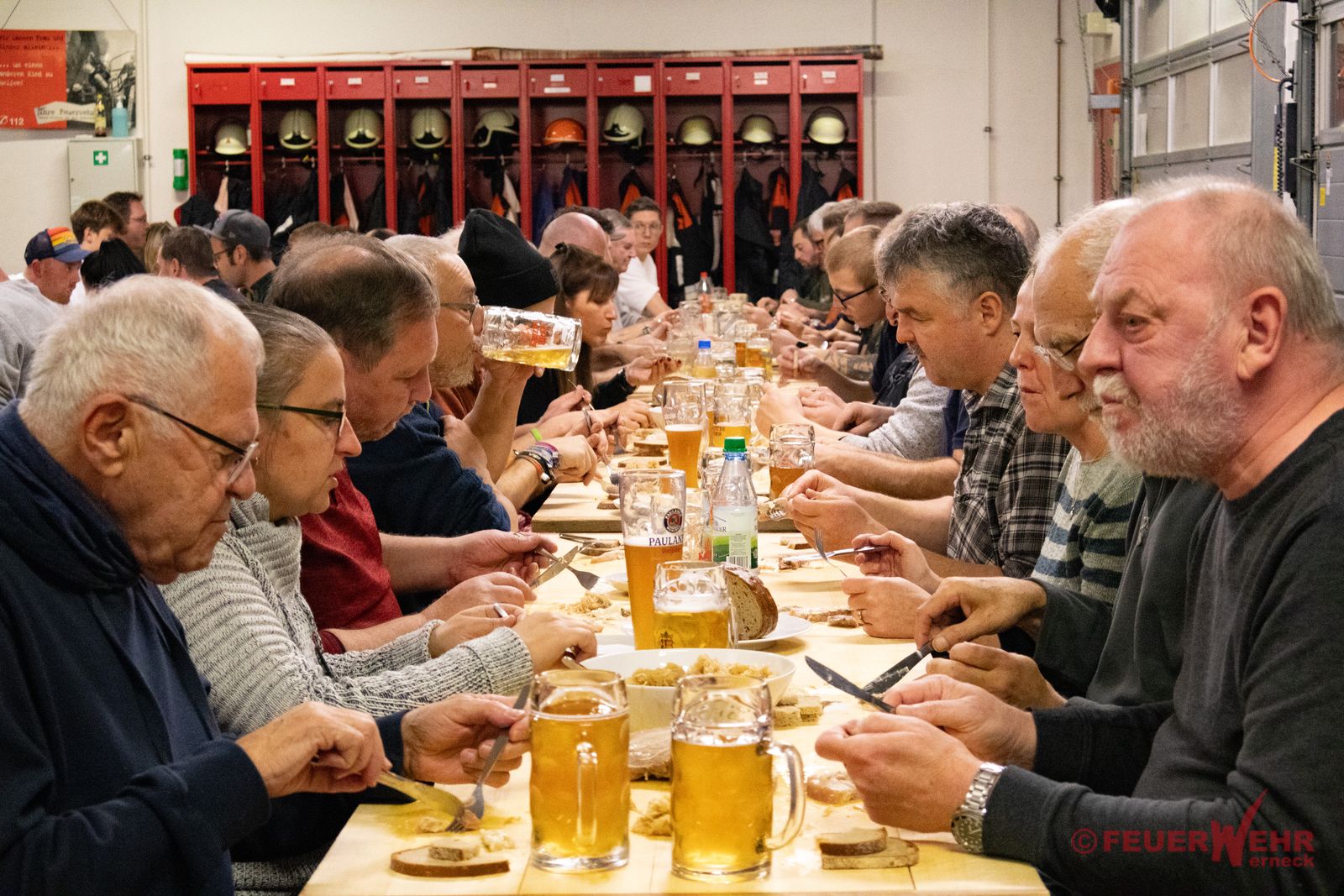 Nach dem erfolgreichen Neustart im vergangenen Jahr fand am Samstagabend erneut unsere traditionelle Schlachtschüssel in der Fahrzeughalle statt. Über 100 Gäste folgten der Einladung und genossen in geselliger Runde die typisch Schweinfurter Spezialität, die mittlerweile sogar offiziell zum immateriellen UNESCO-Kulturerbe zählt.