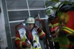 Da insgesamt zwei Erwachsene und zwei Kinder vermisst wurden, rückten immer mehr Angriffstrupps unter schwerem Atemschutz in das Gebäude vor. Insgesamt drei Trupps suchten das Gebäude nach Personen ab und konnten auch alle Vermissten retten. Doch vor dem Aufatmen kam das Worst-Case-Szenario: Ein Angriffstrupp im Gebäude meldete einen Notfall, ein Atemschutzgeräteträger kann sich nicht mehr aus eigener Kraft aus dem Gebäude retten und braucht schnellstmöglich Hilfe. Hier griff der vierte, als Sicherheitstrupp bereitgestellte Angriffstrupp ein und holte den verletzten Kameraden in der Notsituation schnell und unkompliziert aus dem Gefahrenbereich.