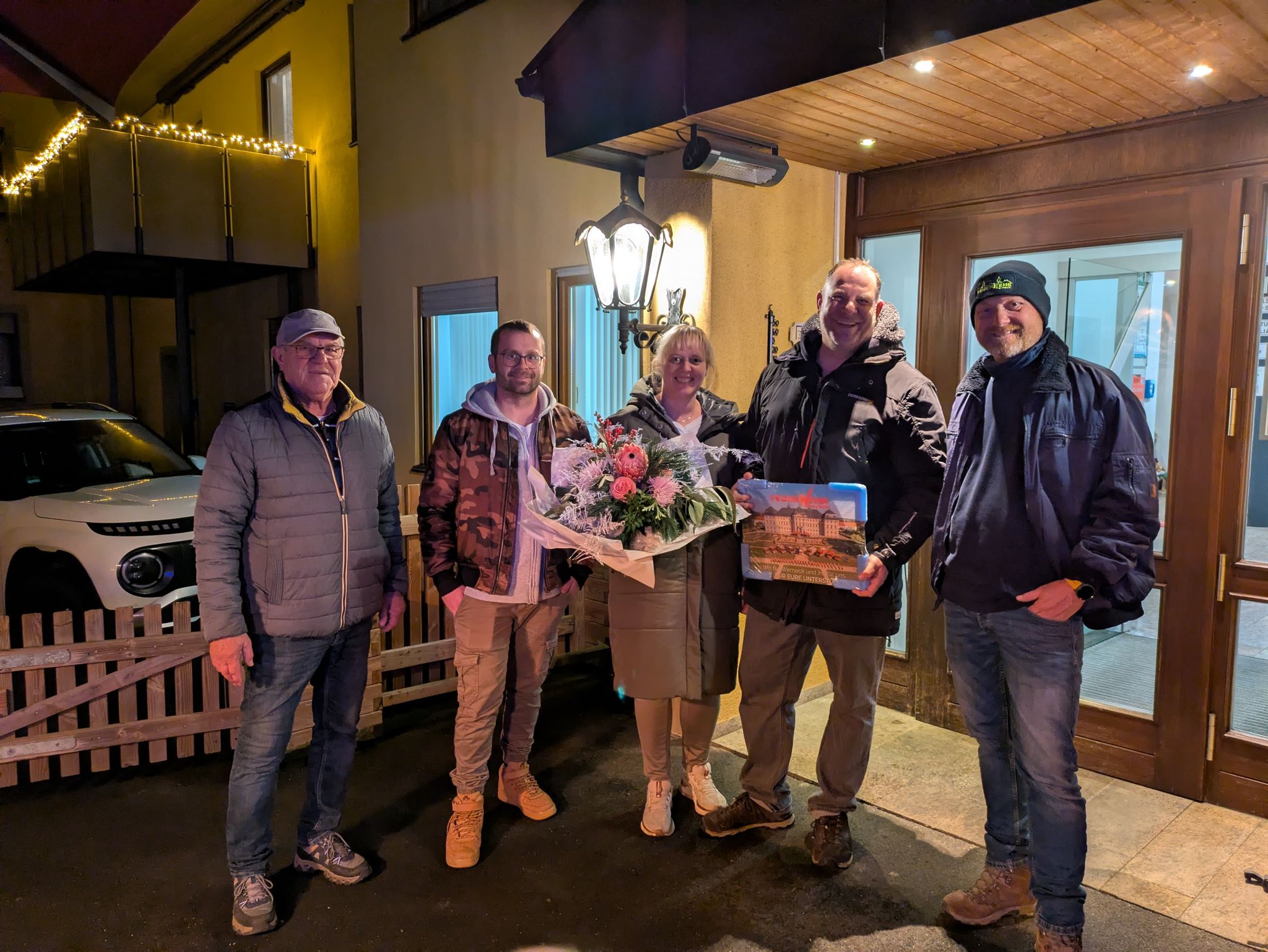 Die Jugendlichen kamen an diesem Abend nicht allein zur Krone Post, sondern hatten den Vereinsvorsitzenden, Stefan Hein und unseren Ehrenvorsitzenden Otmar Hart im Schlepptau. Die beiden überbrachten im Namen der gesamten Feuerwehr Werneck die herzlichsten Glückwünsche zum 175-jährigen Jubiläum der Krone Post. Dass ein Gasthaus so lange existiert ist keine Selbstverständlichkeit - für die Feuerwehr ist es jedoch umso mehr ein Glücksfall. Denn als „Partner der Feuerwehr“ unterstützen die Inhaber Marina und Tobias uns immer wieder und auf vielen verschiedenen Ebenen. Mit kleinen Jubiläumsgeschenken brachten unsere Vorstände nicht zuletzt auch ihre Dankbarkeit für die langjährige, vorbildlich gelebte Partnerschaft zum Ausdruck.