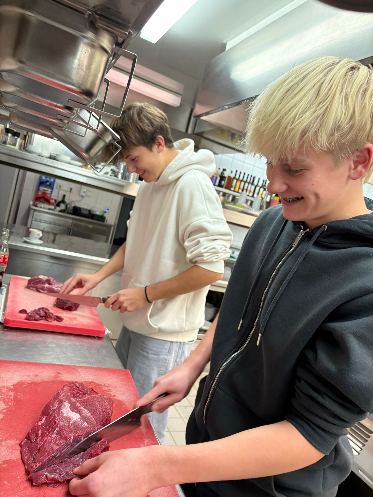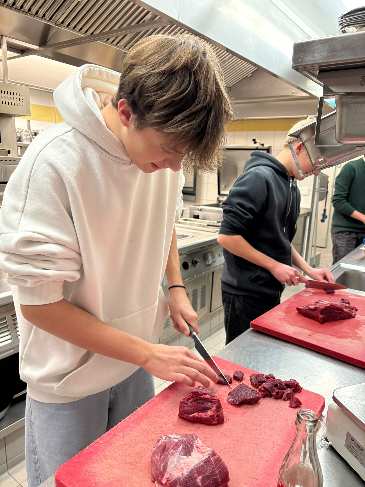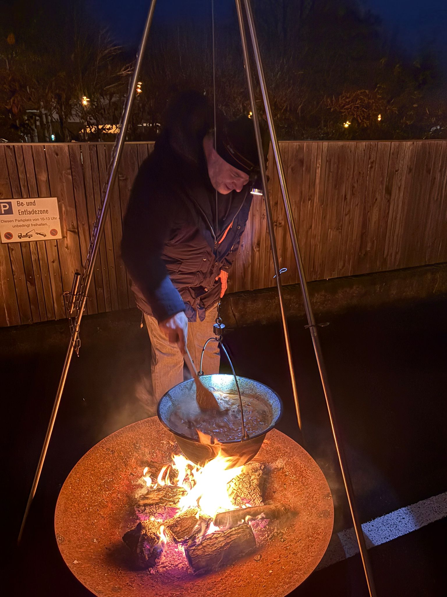 Ein Teil dieser Partnerschaft ist auch, dass die Jugendfeuerwehr im Haus immer willkommen ist. So waren die Jugendlichen auch an an diesem vorweihnachtlichen Abend zu heißem Glühwein – in Wirklichkeit natürlich alkoholfreier Punsch – und ebenso heißem Gulaschtopf eingeladen. Doch der wurde nicht einfach für sie gekocht, die Jugendlichen mussten selbst Hand anlegen. Unter fachkundiger Anleitung von Chefkoch Tobias wurde in der Küche und über offenem Feuer geschnippelt, gebrutzelt und gekocht. Das leckere Ergebnis ließen sich die Jugendlichen schließlich gemeinsam schmecken und verbrachten noch einen schönen Abend in angenehmer Atmosphäre.