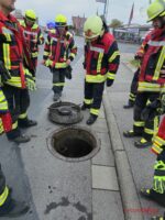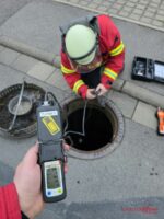 Daraufhin richtete sich die Aufmerksamkeit auf die in der Straße befindlichen Schachtdeckel des Abwassernetzes. Während im ersten Schacht keine Auffälligkeiten festgestellt wurden, konnte im zweiten Kanalschacht der Ursprung des Geruchs lokalisiert werden. Ein Mehrgasmessgerät wurde daraufhin mit einer Sonden-Pumpe ausgerüstet, um Messungen direkt im Abwasserkanal vorzunehmen. Dabei zeigten sich lediglich leicht erhöhte Werte, jedoch keine gefährliche Gaskonzentration.