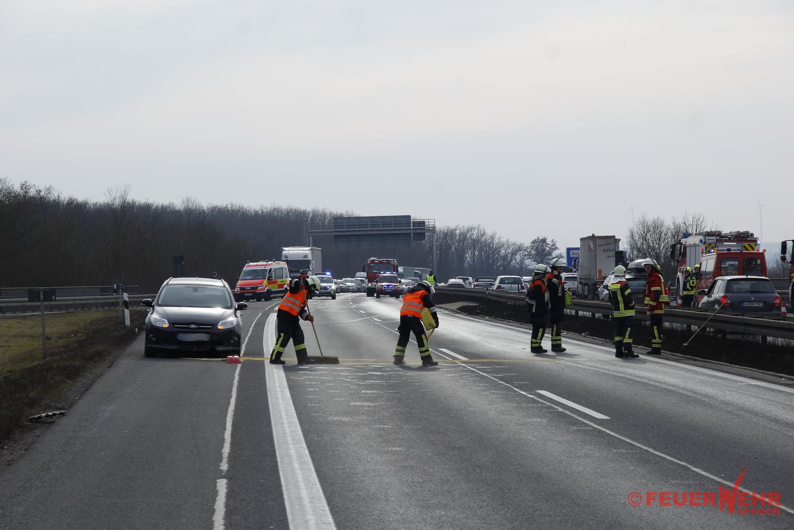 Da bei den Unfällen niemand schwerer verletzt oder gar eingeklemmt wurde kümmerten sich die Feuerwehren um das Abbinden der auslaufenden Betriebsmittel, das Sicherstellen des Brandschutzes sowie im weiteren Verlauf die Verkehrsabsicherung. Nachdem die Autobahnmeisterei die Vollsperrung in Fahrtrichtung Bamberg übernahm und die beschädigten PKW dieser Richtungsfahrbahn abgeschleppt wurden, konnte die Feuerwehr Werneck nach ca. 2 Stunden den Einsatz beenden.