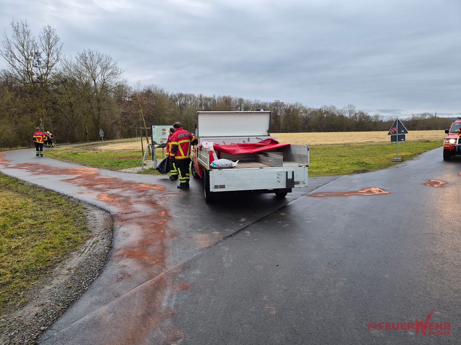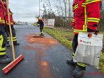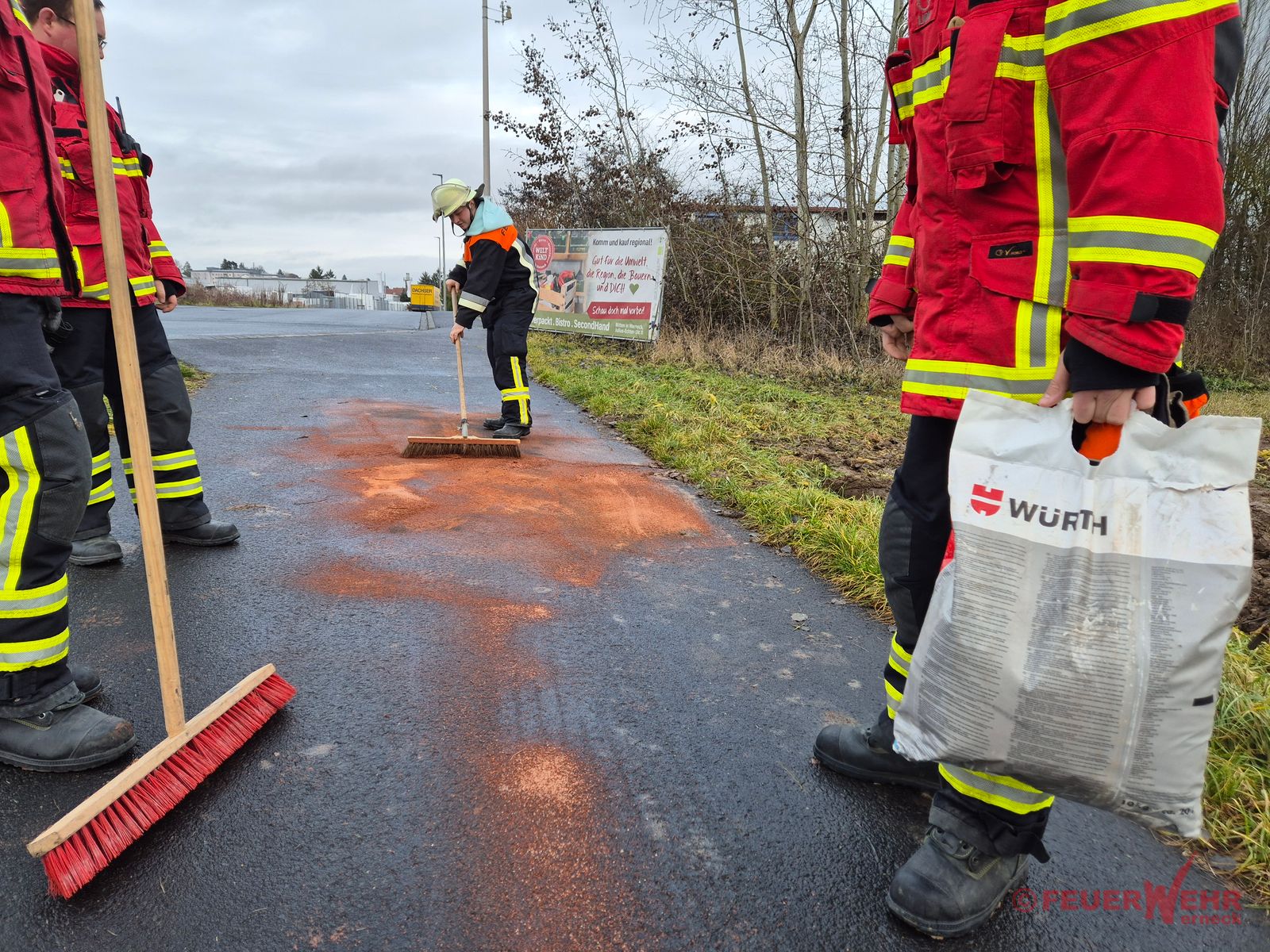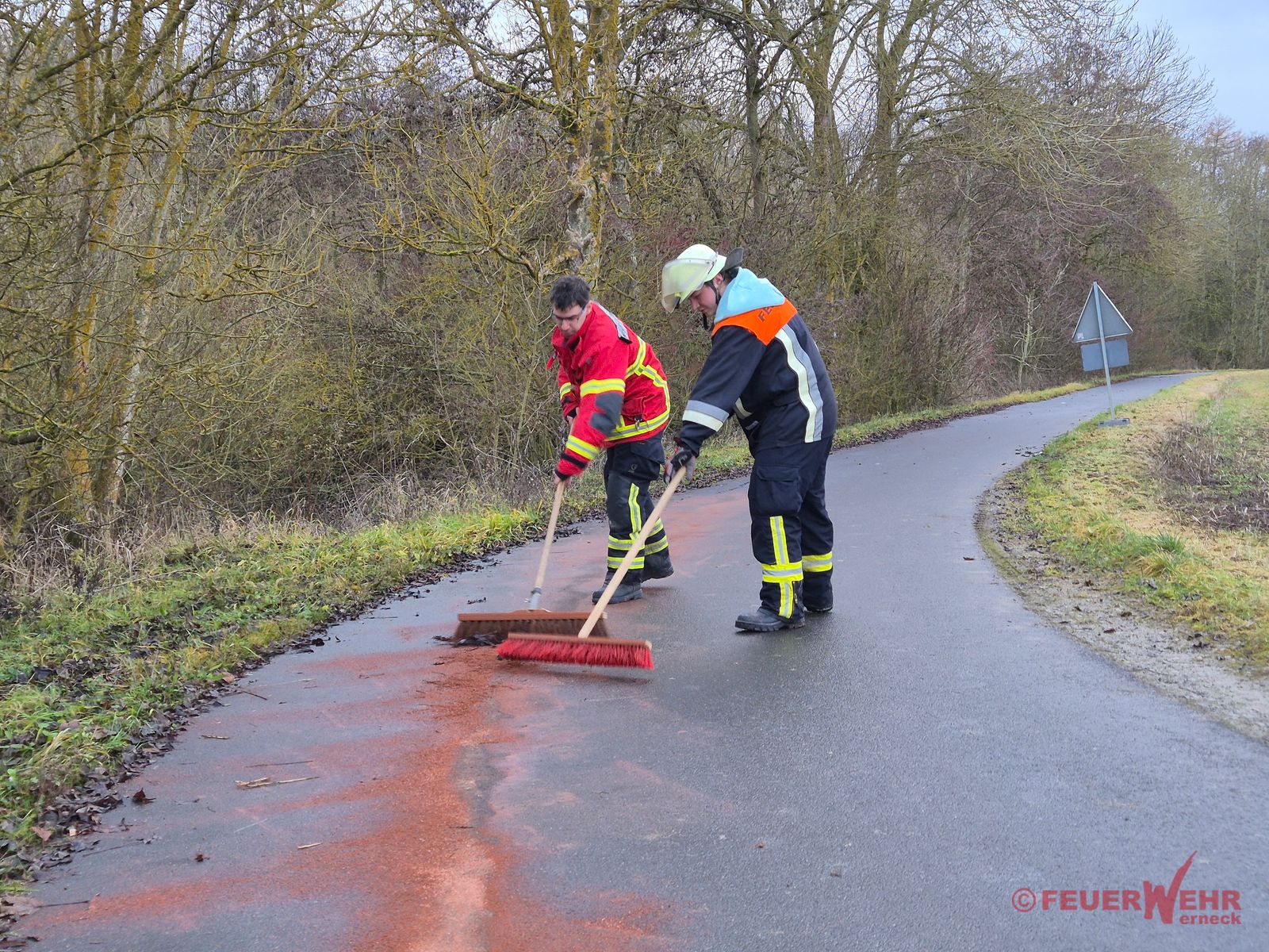 Die Einsatzkräfte streuten die entsprechenden Stellen mit Ölbindemittel ab, nahmen überschüssiges Bindemittel wieder auf und stellten Warnschilder auf. Nach ca. einer halben Stunde war der Einsatz für die Feuerwehr beendet.