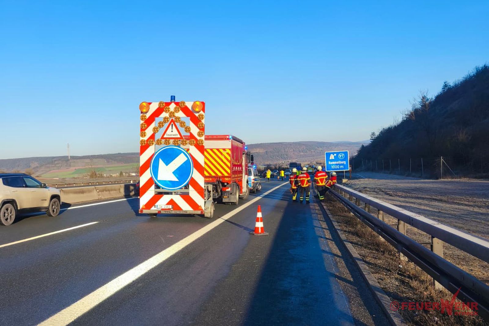 Während die Feuerwehren Euerbach und Wülfershausen die Einsatzstelle betreuten, stellte die Feuerwehr Werneck mit dem Verkehrssicherungsanhänger die Absicherung der rechten Fahrspur sicher und leitete den Verkehr kontrolliert über den linken Fahrstreifen an der Unfallstelle vorbei.