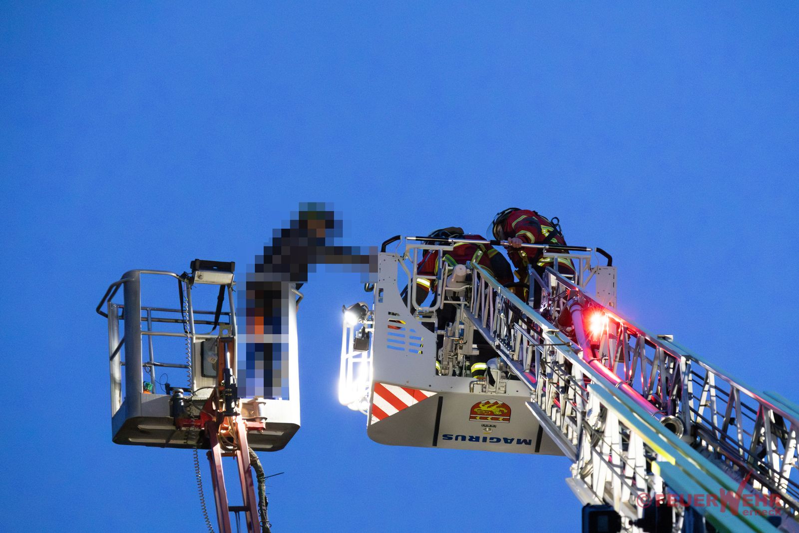 Bei Eintreffen der Wernecker Einsatzkräfte wurde aufgrund der unsicheren Lage der Hubarbeitsbühne die Drehleiter unverzüglich in Stellung gebracht. Die Priorität lag auf der sicheren Rettung der Person aus der Arbeitsbühne. Diese konnte innerhalb weniger Minuten sicher und unverletzt zu Boden gebracht werden.