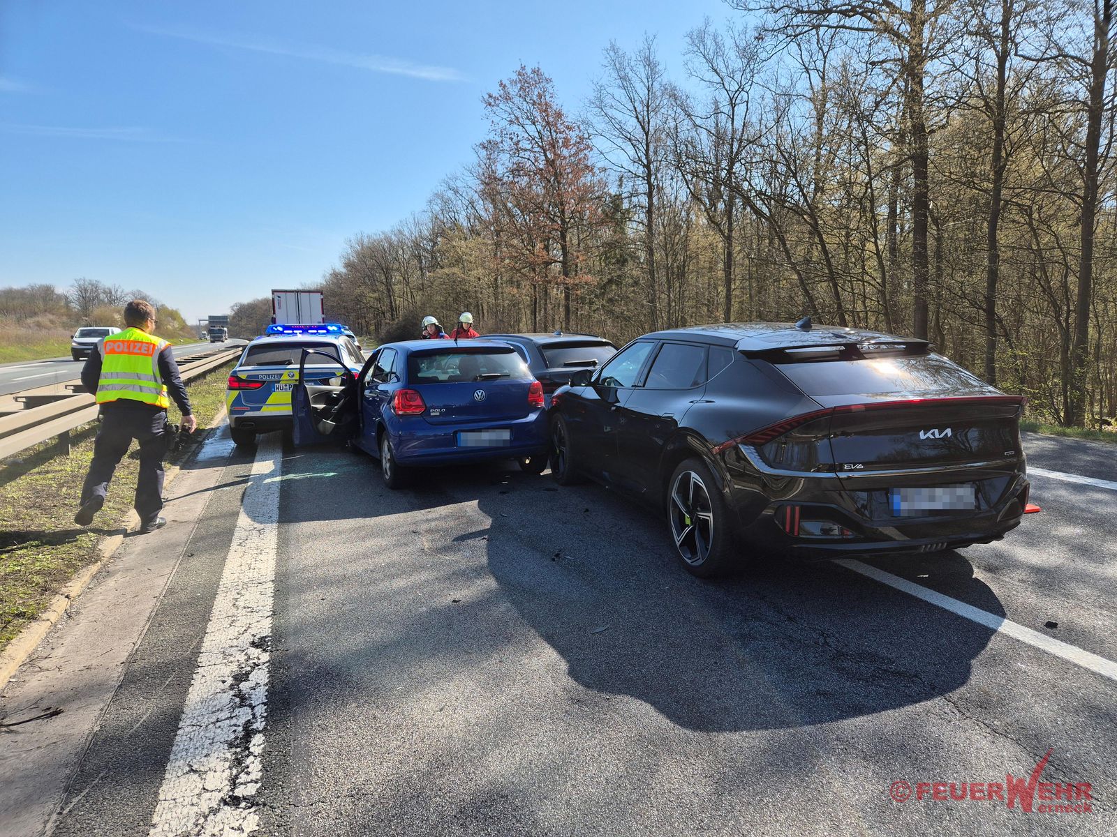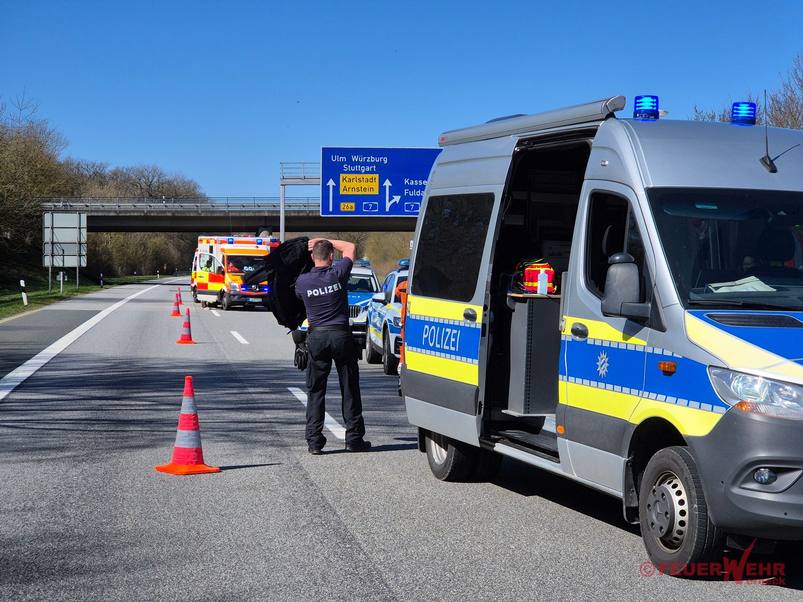 Die Feuerwehr Werneck unterstützte die Polizei bei der Verkehrsabsicherung, stellte den Brandschutz sicher und band auslaufende Betriebsstoffe ab. Nach ca. einer Stunde konnte der Einsatz seitens Feuerwehr beendet werden. Zur Unfallaufnahme wurde der betroffene Abschnitt der A70 durch die Autobahnmeisterei gesperrt.