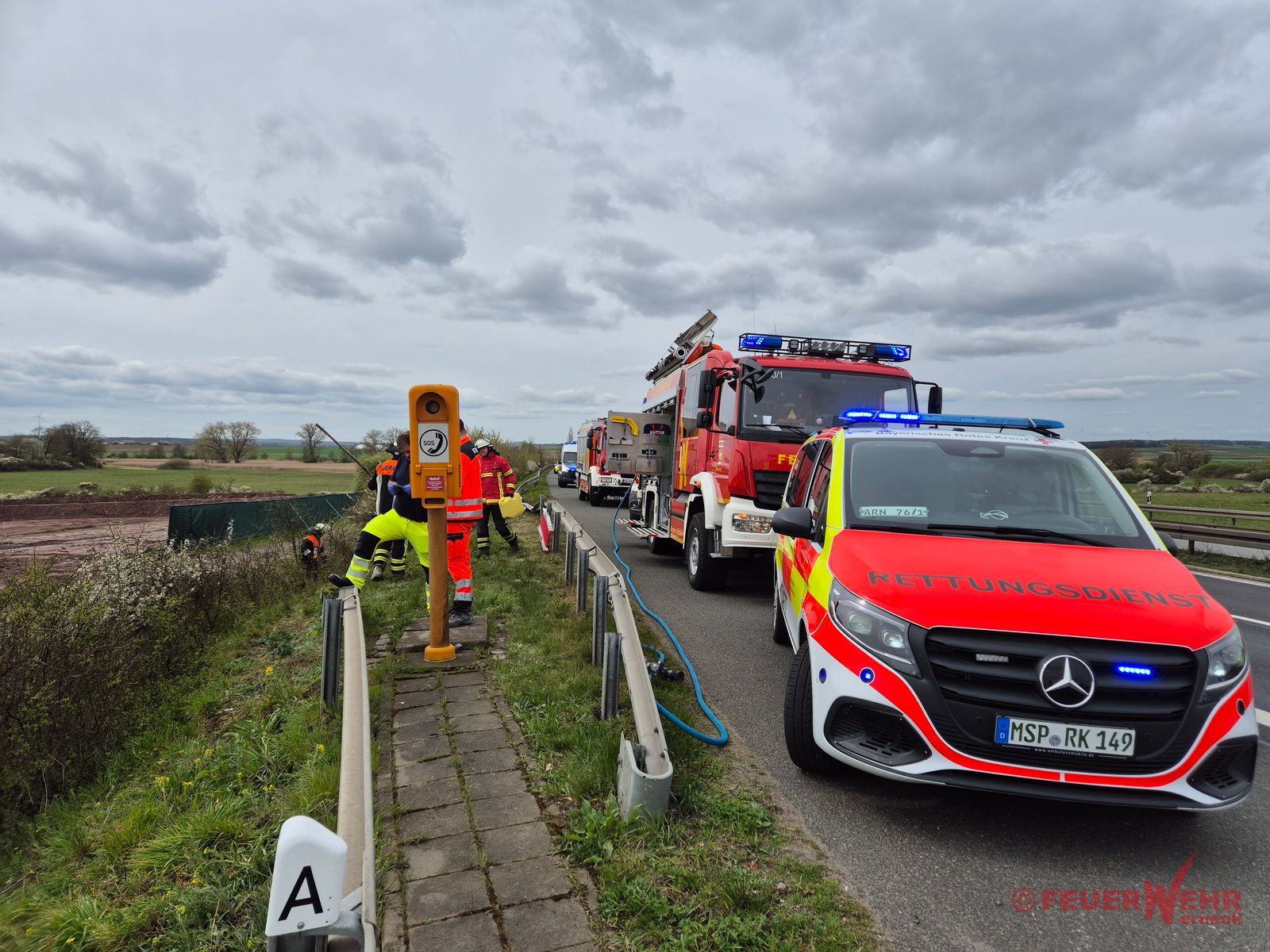 Die Feuerwehr Werneck stellte den Brandschutz sicher, sperrte den rechten Fahrstreifen und verhinderte die Ausbreitung von auslaufendem Kraftstoff aus dem beschädigten Dieseltank.
