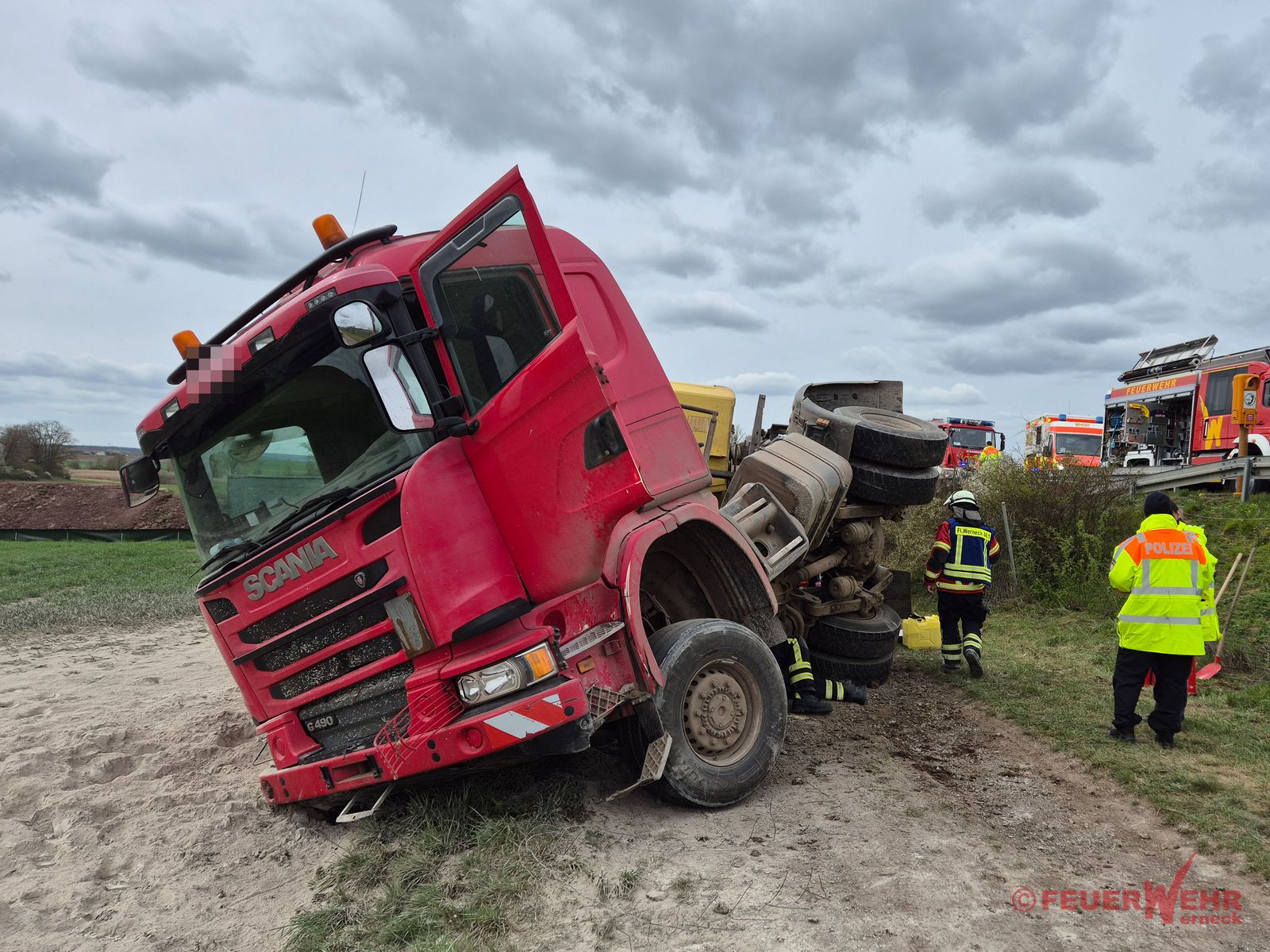 Der Fahrer des Lkw blieb nach ersten Erkenntnissen unverletzt, wurde jedoch zur weiteren Abklärung durch den Rettungsdienst in ein Krankenhaus gebracht.